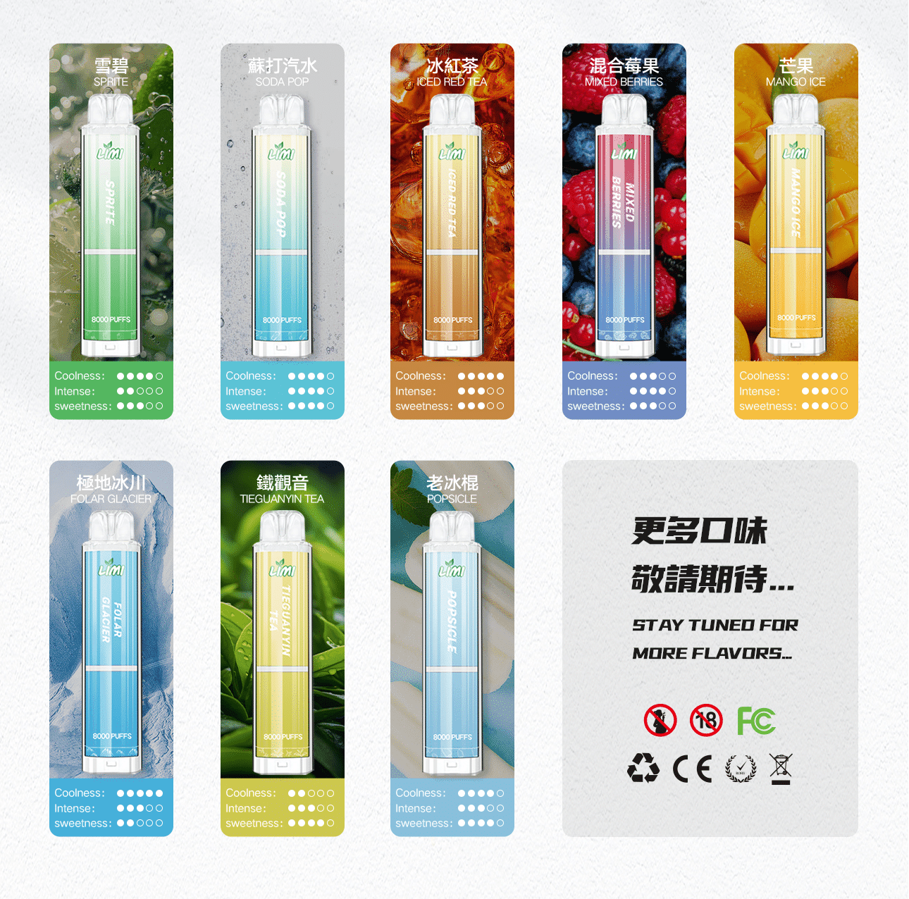 LIMI 辣妹拋棄式 8000口|15ml 大容量・550mAh 可充電・16種口味