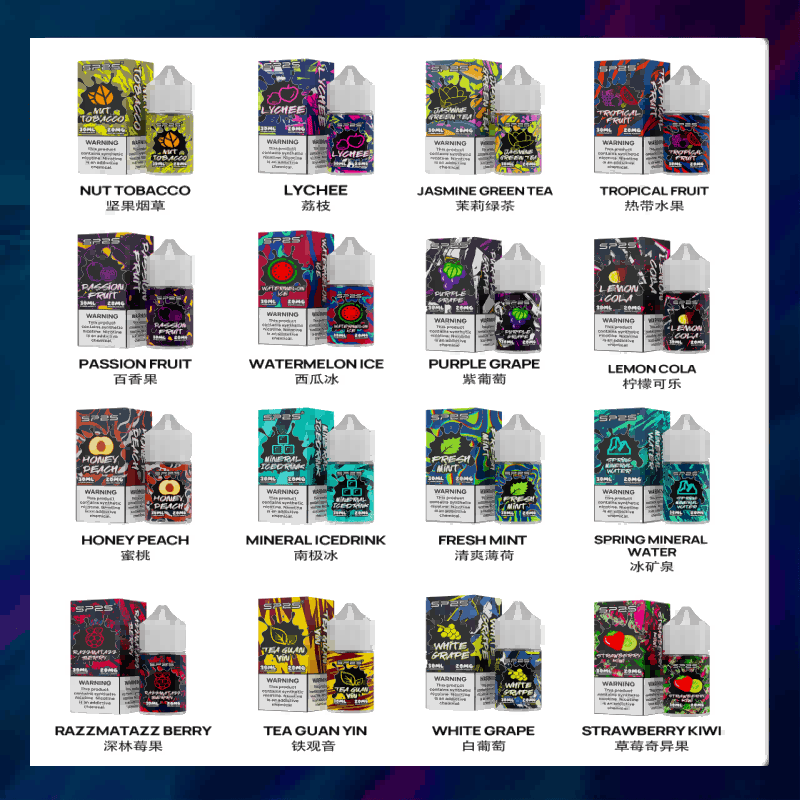 SP2S 煙油以高純度原料、穩定霧化表現、口感層次分明聞名,深受玩家與新手喜愛。多款熱門水果、涼感與經典口味任選,適合各類型電子煙設備使用。